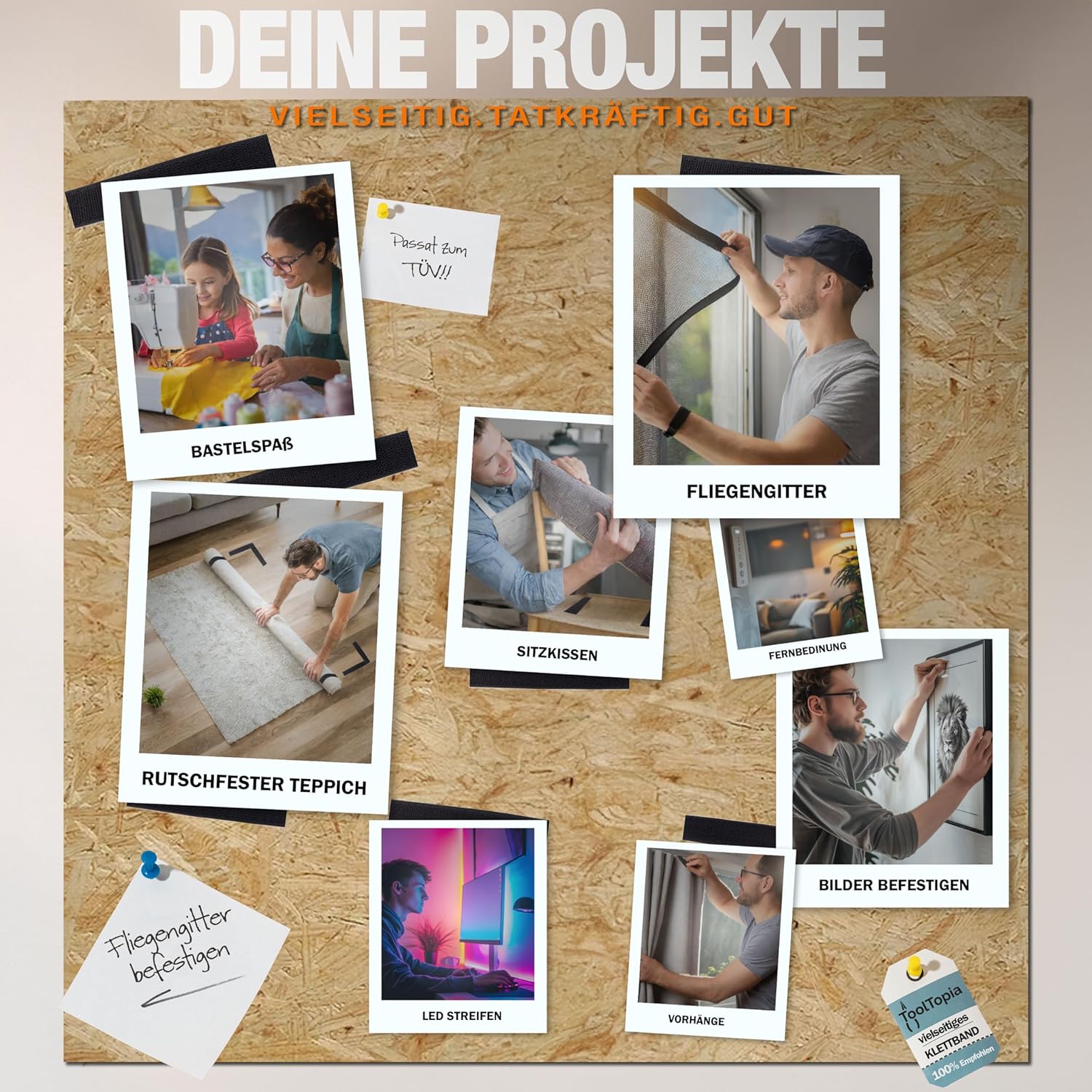 All-rounder with durability: Thanks to the increased number of hooks and loops per cm², our Velcro tape offers unparalleled holding power even after more than 10,000 fastening processes . Perfect for long-term and versatile applications.